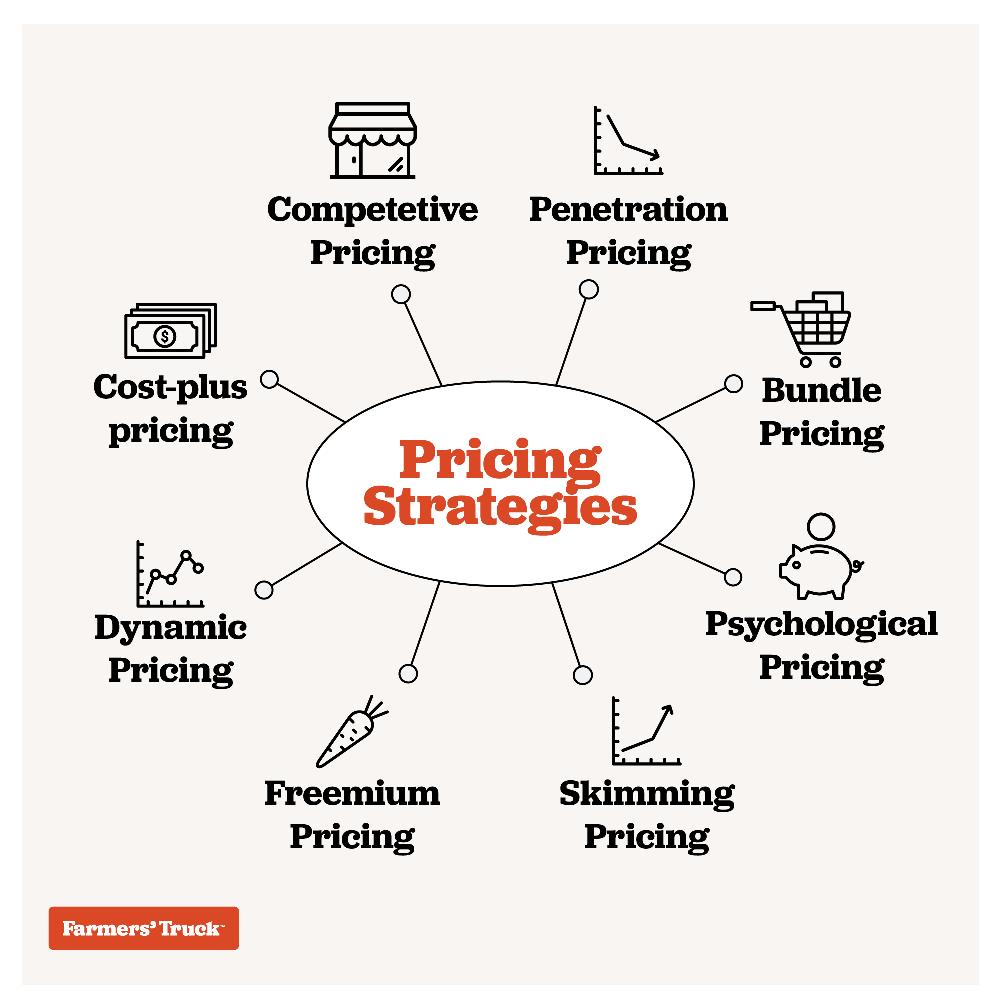 You’ll also want to consider the point-of-sale (POS) system you’re using, integration with an electronic benefits system, such as SNAP (US), and your customer’s comfort level with handling cash. A simplified pricing strategy (eg: pricing by the quarter) can make for a smoother transaction for both you and your customers. It’s okay to try a few approaches in order to determine what works best.